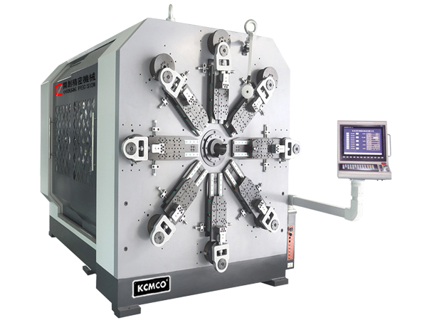 KCT-1280WZ 12-axis camless CNC versatile spring rotating forming machine, referred to as 8.0mm camless spring machine, machining line diameter φ3.0-8.0mm, suitable for the production of various precision compression spring, tension spring, torsion spring, scroll spring, tower spring, flat wire springs, special-shaped spring and molding line and other products, widely used in furniture, mold, machinery, agricultural machine, electric vehicle, automobile, railway and aviation etc..